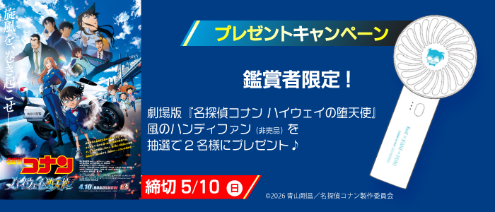 4/10(金)劇場版『名探偵コナン ハイウェイの堕天使』の公開を記念して、「アースシネマズ姫路での鑑賞者限定」のキャンペーンが決...